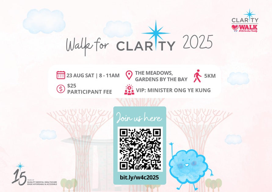 This year marks 15 years of Clarity Singapore providing quality and accessible mental health support. From April this year, Clarity has fully subsidised all their services, making sure cost is never a barrier for those seeking help. That’s why your support matters so much.